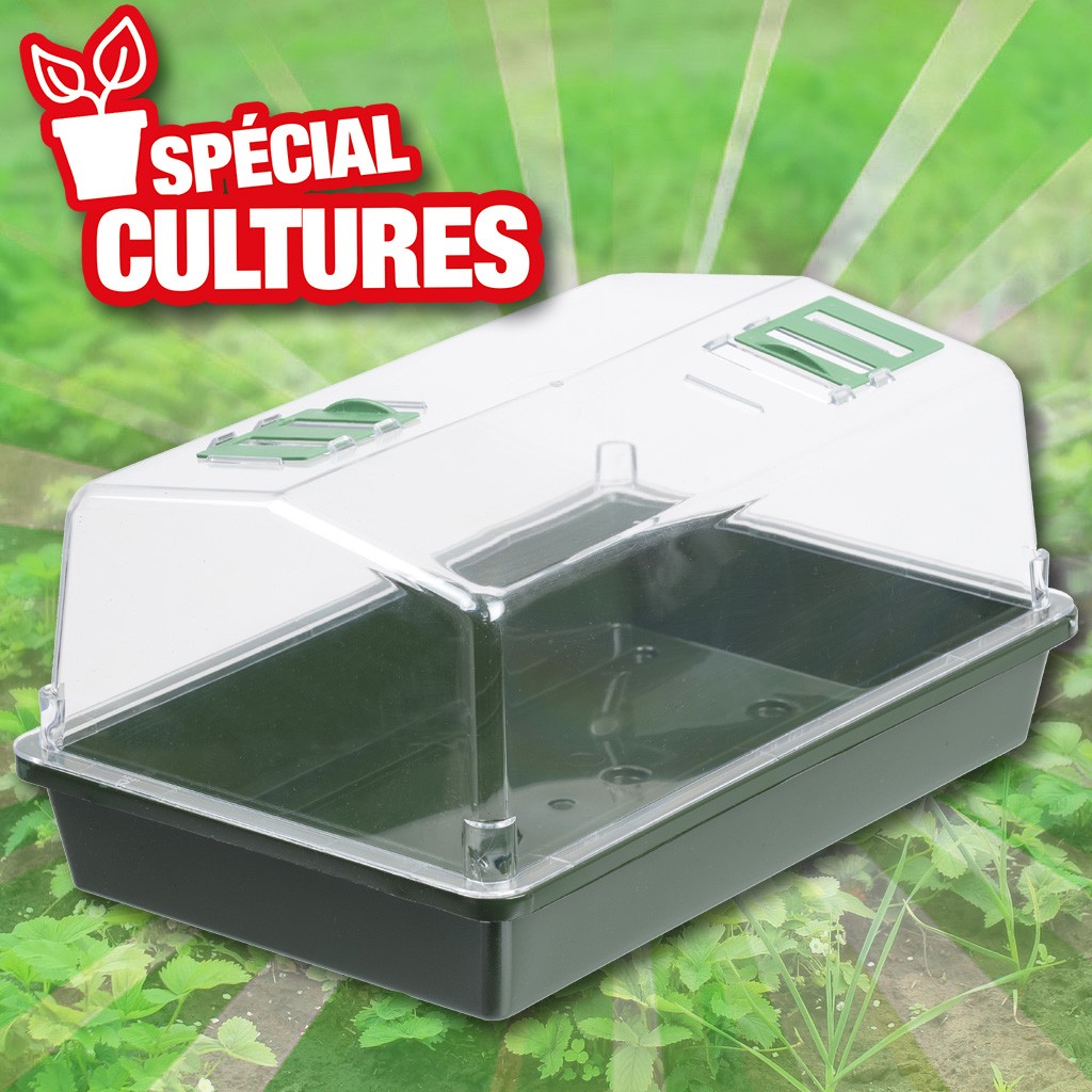 Terrine rigide en plastique injecté, équipée dun couvercle transparent, muni de deux aérateurs coulissants pour un réglage optimal du niveau dhumidité,