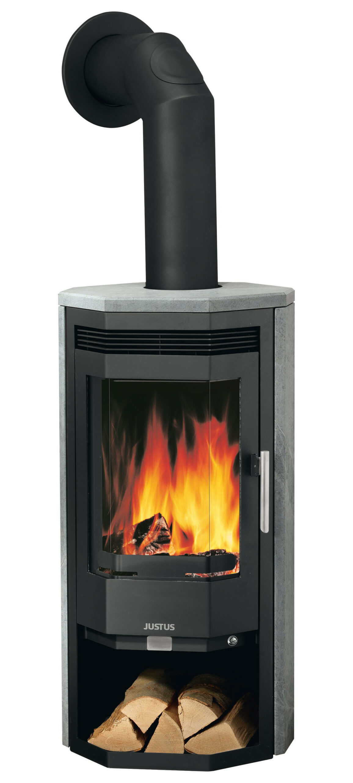 Le poêle à bois Usedom 5 D de Justus allie design contemporain et efficacité thermique grâce à sa construction en pierre ollaire et sa porte en fonte noire. Avec une puissance de 5,5 kW, il offre une chaleur agréable et durable, adaptée pour chauffer des espaces jusqu’à 105 m³.